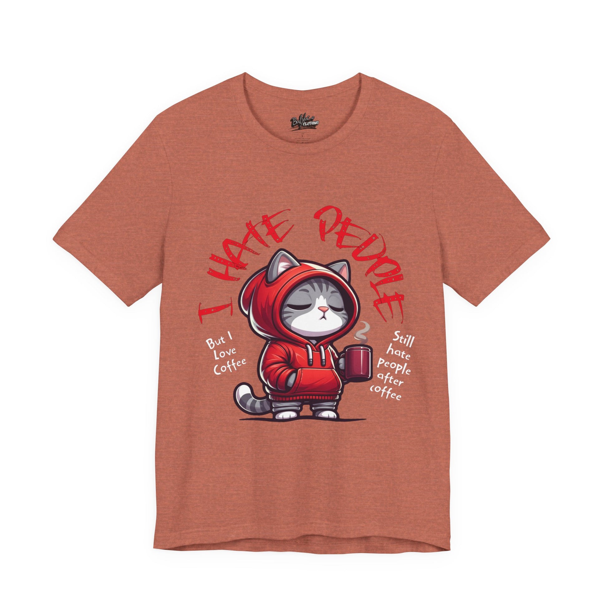 Slip into a soft, lived-in tee that feels like your favorite quiet morning. This lightweight Bella+Canvas shirt carries a playful, slightly grumpy cat in a red hoodie holding a steaming mug — a design that reads like a small, private joke for people who run on coffee and dry humor. The fabric is breathable and smooth against skin, with side seams and a ribbed collar that keep the shape wash after wash. Wear it on slow mornings, coffee runs, or while curled up with a book. It’s relaxed without being sloppy — a casual staple that speaks to anyone who prefers blunt honesty and a warm cup.